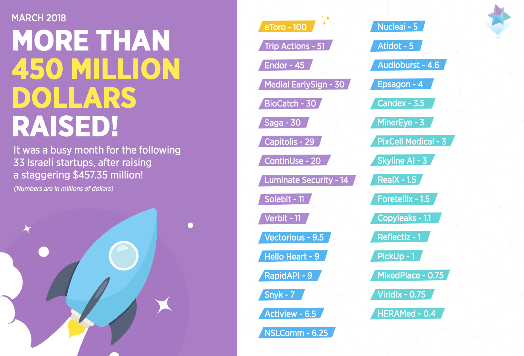 33 ISRAELI STARTUPS RAISED OVER $450 MILLION THIS MARCH [INFOGRAPHIC]