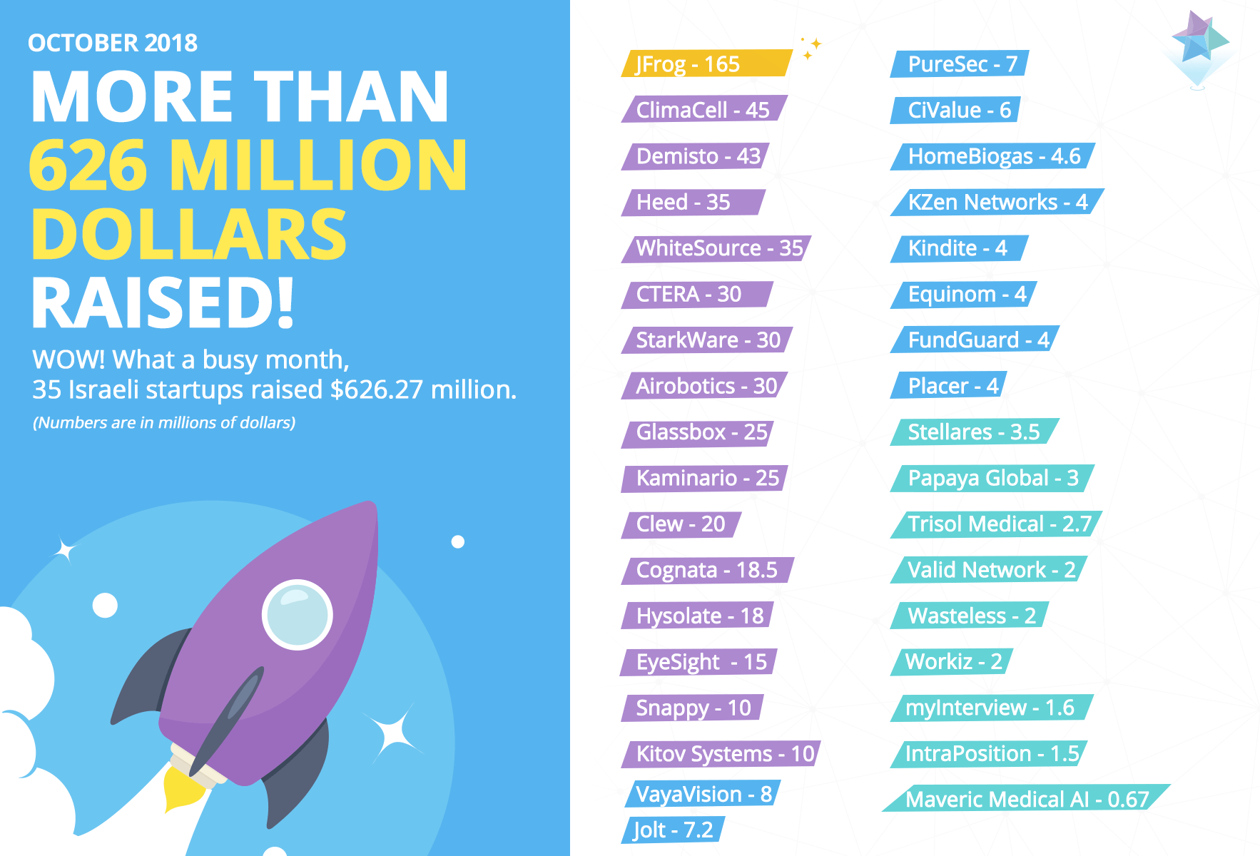 We thought September was a busy month with record-breaking fundings, but it seems that October just topped it: 35 startups (that we know of) raised more than $626 million. That’s impressive.